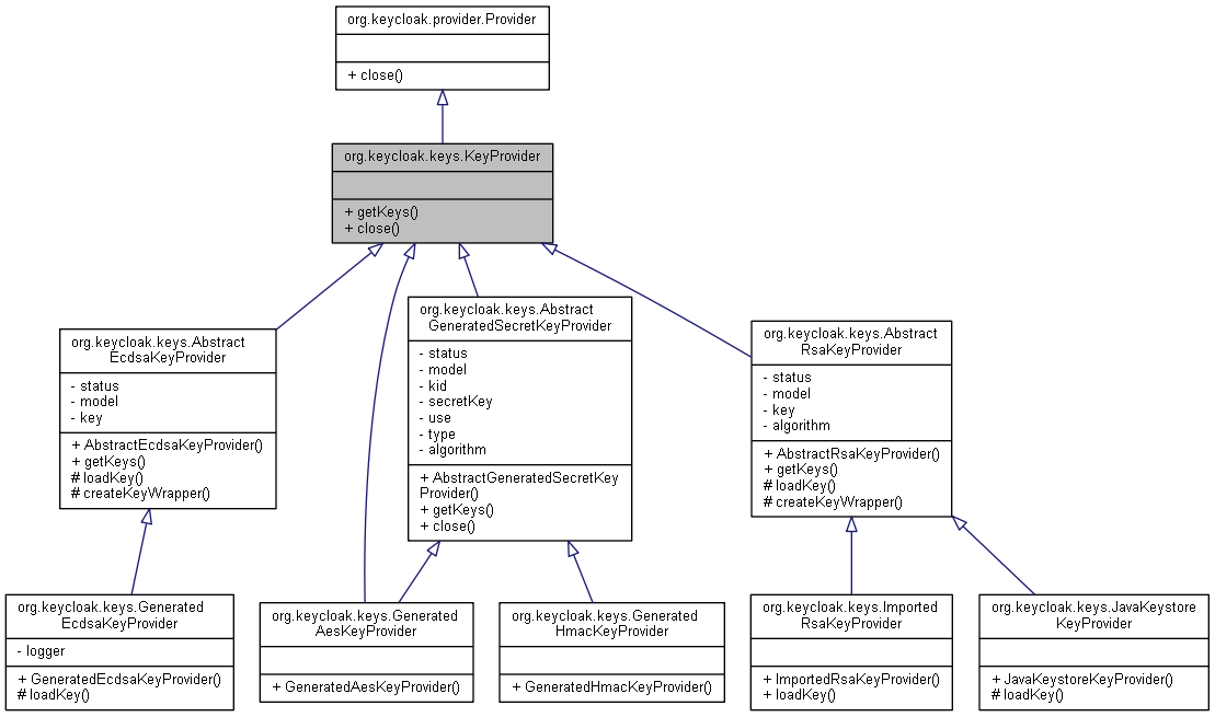 org.keycloak.keys.AbstractRsaKeyProvider, org.keycloak.keys.AbstractGeneratedSecretKeyProvider, org.keycloak.keys.AbstractEcdsaKeyProviderで実装されています。